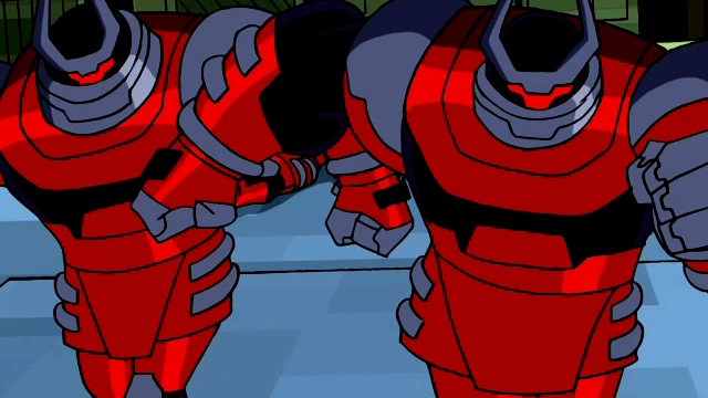 Depois dos Techadons serem destruídos pela corda, eles se regeneram. Azmuth manda Ben deixar um cristal dentro dele, assim o robô se manterá ocupado. Ben obedece. Azmuth mexe nas configurações do robô e manda Ben continuar a lutar, de qualquer jeito, para pelo menos mantê-los atrasados. Ele muda para Glutão (Turvo) e entra em ação, comendo três de uma só vez.