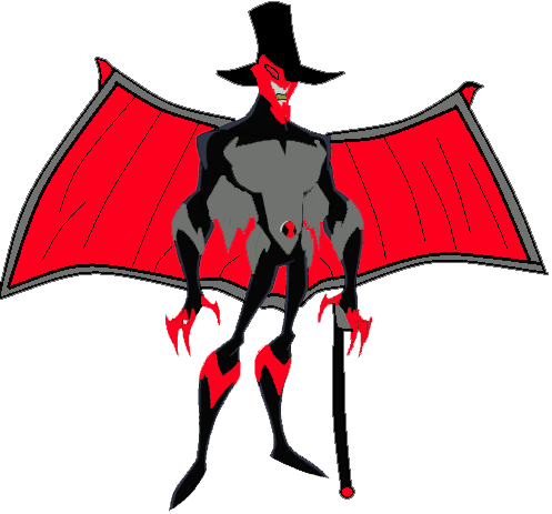 Bloodpire have two big wings.There are cap in Bloodpire's head.There are stick in Bloodpire's right hand.