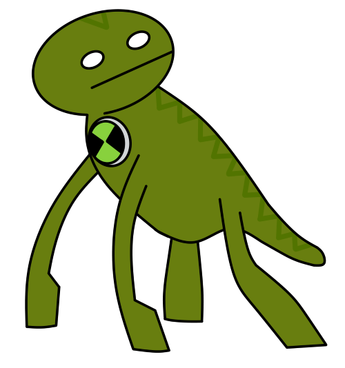 Similamander is a quadrupedal alien with murky green skin. There is a double helix-like marking running down his spine. The Omnitrix symbol is on his chest.