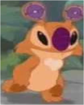 Sound Sample is an orange koala-like alien with white hair on his chest, a big purple nose, and round purple ears.