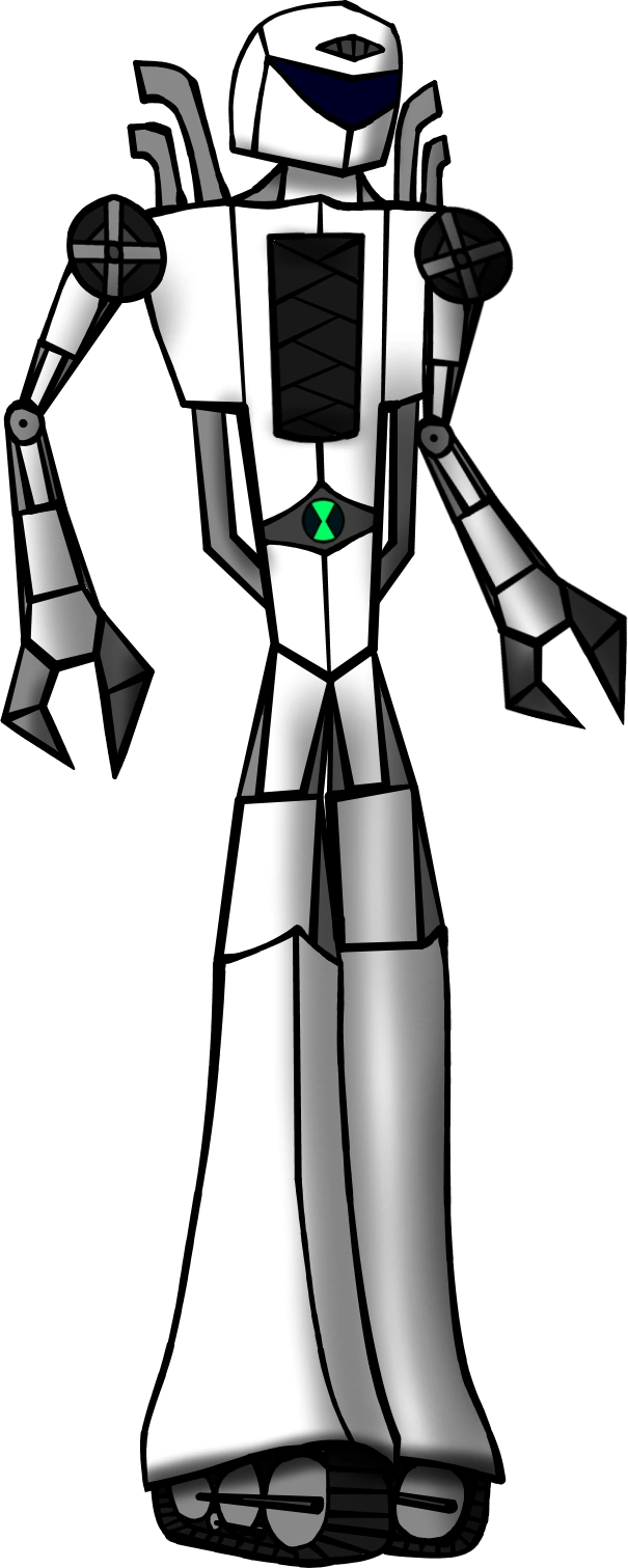 He pressed down on the center of the dial, causing it to sink slightly with a ‘click’, then spring upwards about an inch above the rim of the dial. The black sides of the hourglass symbol retracted, making room for a silhouette to appear in the center. Theo turned the dial to the right, changing the silhouette, then pressed down on the dial. A fast emerald flash later, he stood tall as a white and gray mechanical alien.