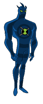 He looks nearly the same as Alien X, but he is now blue with lighter colored hands instead of black with white hands. His old star pattern is replaced with a dark blue portal-like pattern.